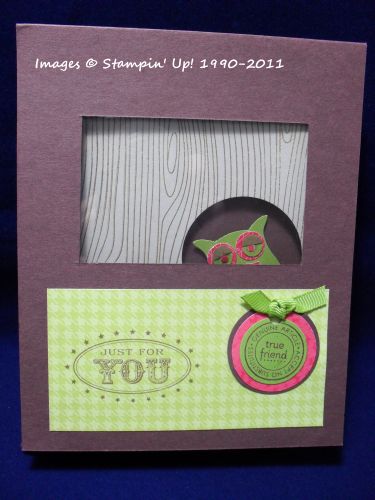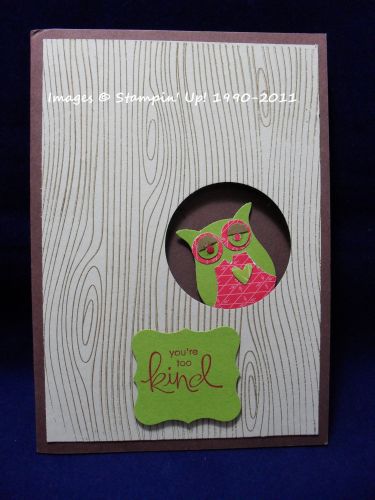 Firstly we have this great little card box. It will hold 4 cards and would make a lovely gift. See the little window? In this photo you can see a glimpse of the owl.