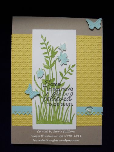 I recently had a visit from my nieces Stacie and Megan. Whilst they were here, I introduced them to the very addicitve pasttime of card making. Here are a couple of their creations which they have based on designs in the latest IBC.
