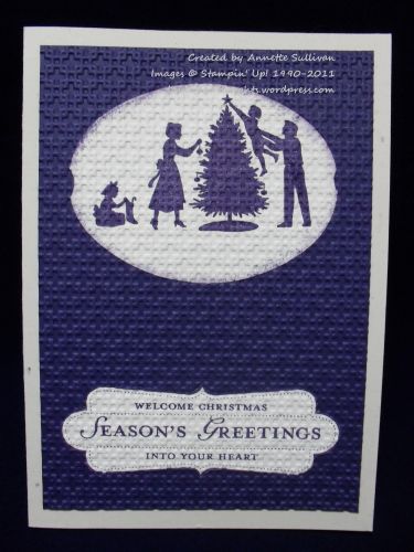 Today, I have used the family decorating the tree with the greeting to make a beautiful inlaid embossing card.