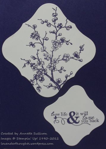 I was sorting out some of my stamps today, and found the beautiful retired Easter Blossoms. I thought these blossoms would be perfect in Concord Crush as a purple card.