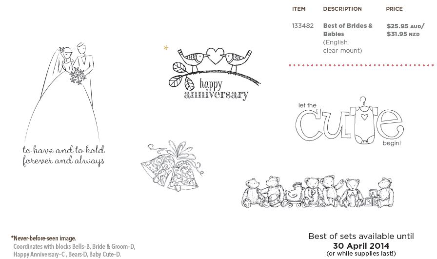 Have you been checking out the “Best of” stamp sets that have issued each month since June 2013? You only have until 30 April 2014 to purchase these limited edition sets before they disappear for ever.