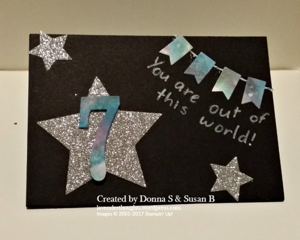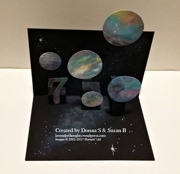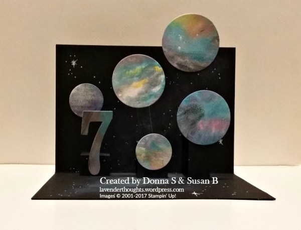 - The nebula was sponged on black cardstock, and the planets were made using the Watercolor Background Smooch technique.