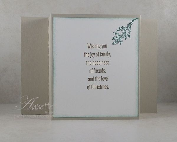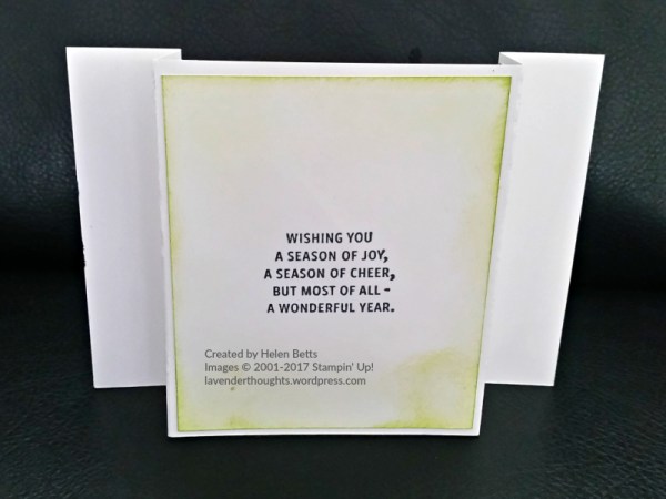 - Stamp Sets: Lovely As A Tree, Merry Patterns (available FREE as Host set until the end of October – see below for details), Every Good Wish for the sentiment on the back.