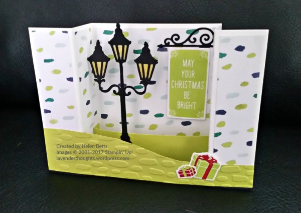 - Supplies: Thick Whisper White, Lemon Lime Twist, Whisper White, Basic Black cardstock, Naturally Eclectic DSP, Lemon Lime Twist and Real Red ink, Brightly Lit Christmas stamp set, Christmas Lamppost Thinlits, Sweetheart Dynamic TIEF.