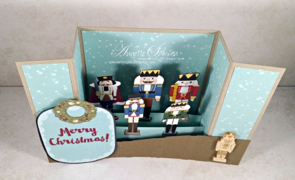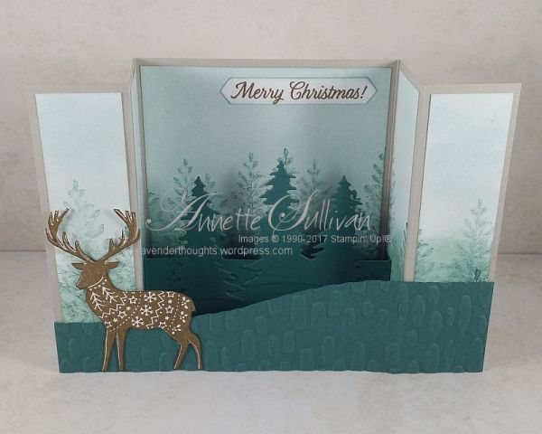 - Supplies used were Christmas Around the World DSP, Crumb Cake, Pool Party and Soft Suede cardstocks, Woodland TIEF, with Every Good Wish stamp set and Real Red ink for the sentiment on the back.