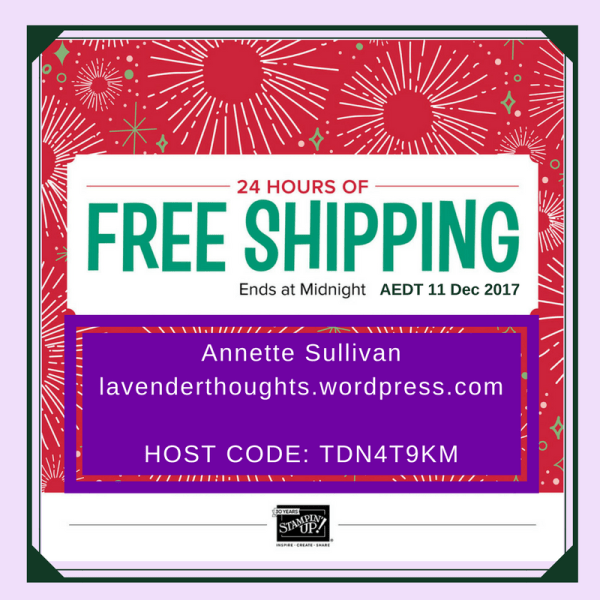 Just a quick post to let you know about the 24 hours of FREE shipping on all Stampin’ Up! orders for Monday 11 December 2017 up until 11.59 pm AEDT.