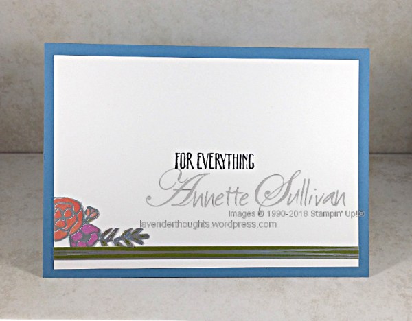 - Stamp a sentiment on the top right hand corner of the DSP. I used one from Petal Palette.