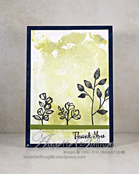 - The card base is Thick Whisper White, with a border created by using Dapper Denim ink Direct to Paper.