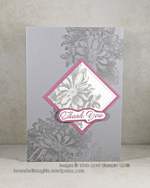 - The card base is Smoky Slate stamped tone on tone with the floral image from Heartfelt Blooms.