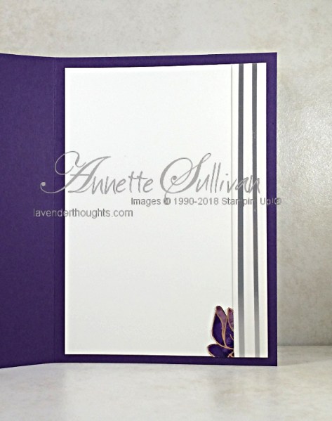 - Attach a piece of the silver stripes from the Springtime Foils Specialty Designer Series Paper to a card base of Elegant Eggplant.