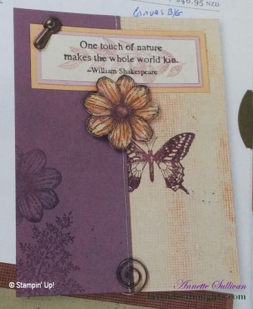 Here is the card from the old catalogue. You can see my note where I have indicated that the Canvas Background stamp was used on the right hand panel.