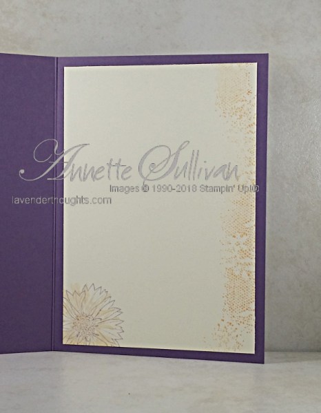- Stamp some images tone on tone on the lower left hand corner of the Perfect Plum card base.