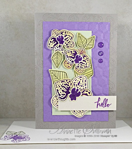 My project uses the Climbing Orchid stamp set and matching Orchid Builder Framelits.