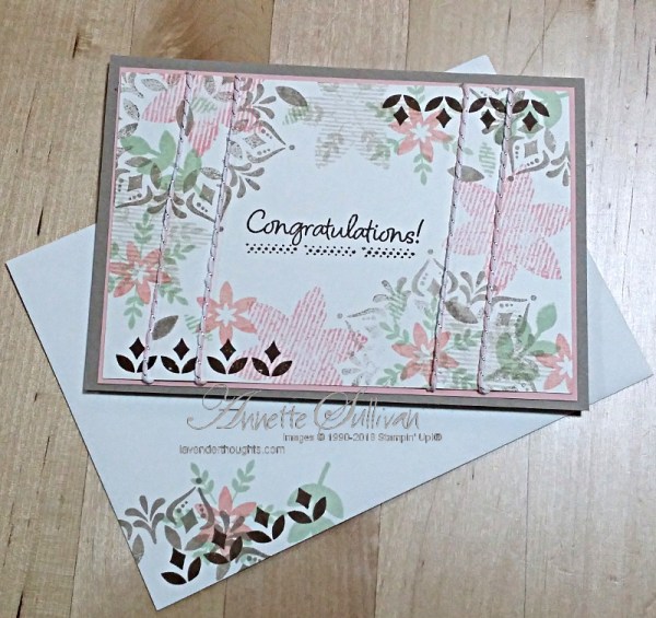 - Crumb Cake, Petal Pink, Blushing Bride, Soft Suede and Soft Sea Foam are the perfect combination of colours for this style of card.