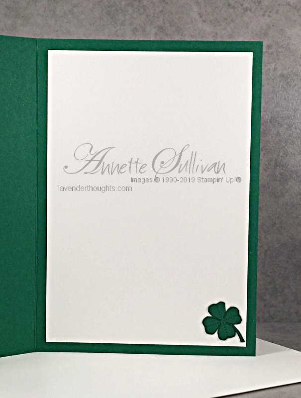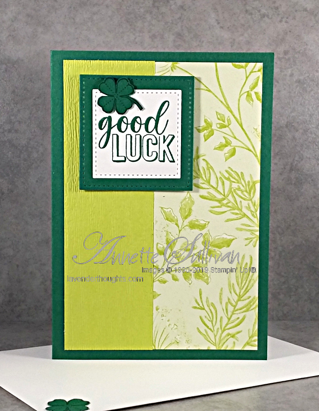 - The four leaf clover was stamped tone on tone on Shaded Spruce and fussy cut.