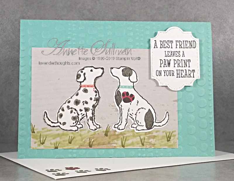 Today, I am showcasing the Happy Tails Bundle and reverse or mirror image stamping with a card from a recent class.