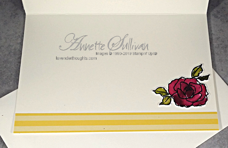 - Use a strip of DSP and one of the die cut flowers to decorate the inside of the card.