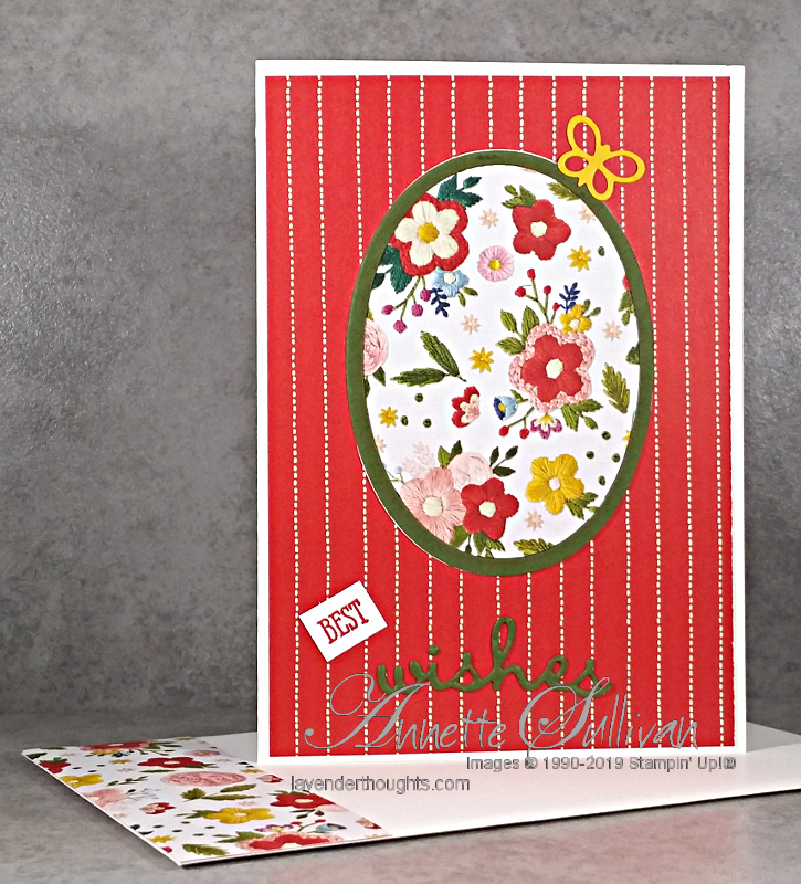 - The flowers in the oval and the white striped layer are both from the same piece of Needlepoint Nook Designer Series Paper.