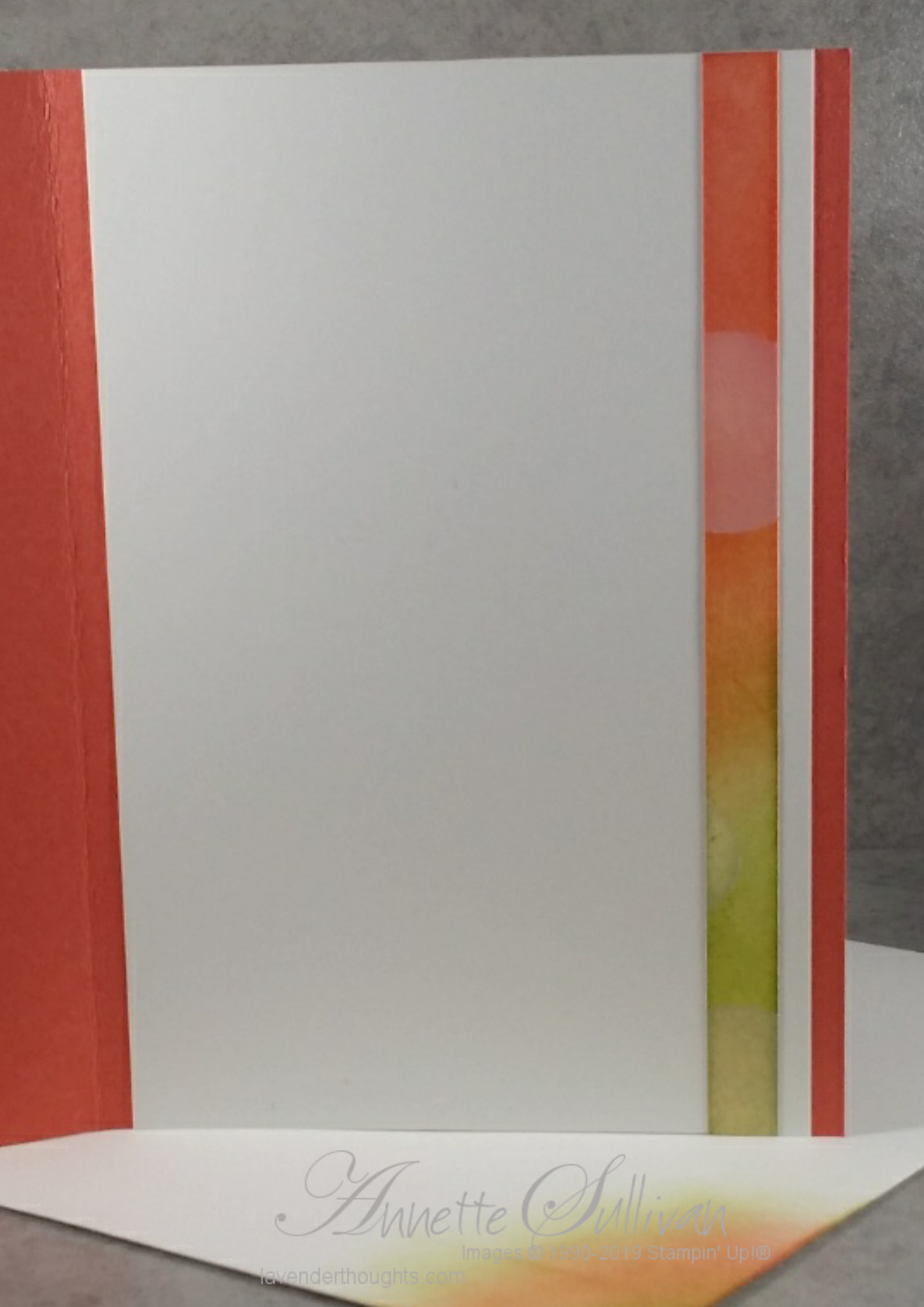 - Sponge a piece of Whisper White cardstock with Old Olive, Calypso Coral and Grapefruit Grove inks. I substituted the Grapefruit Grove for Peekaboo Peach.