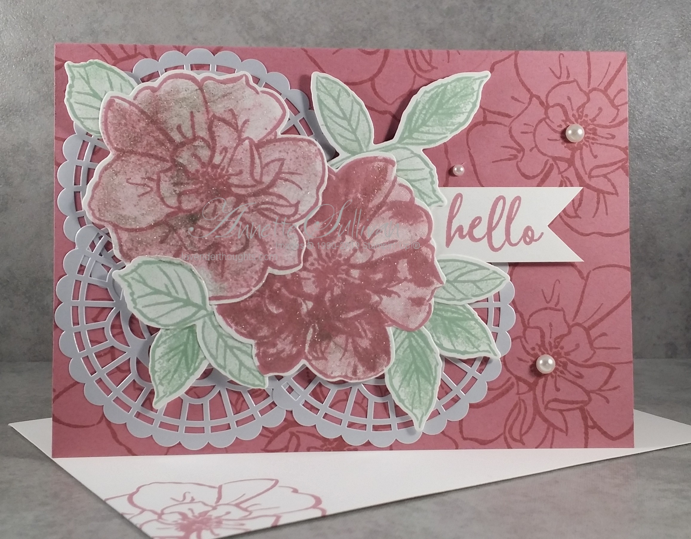- Accessories: Pearlized Doilies, Wild Rose Dies, Pearl Basic Jewels, Wink of Stella, Dimensionals