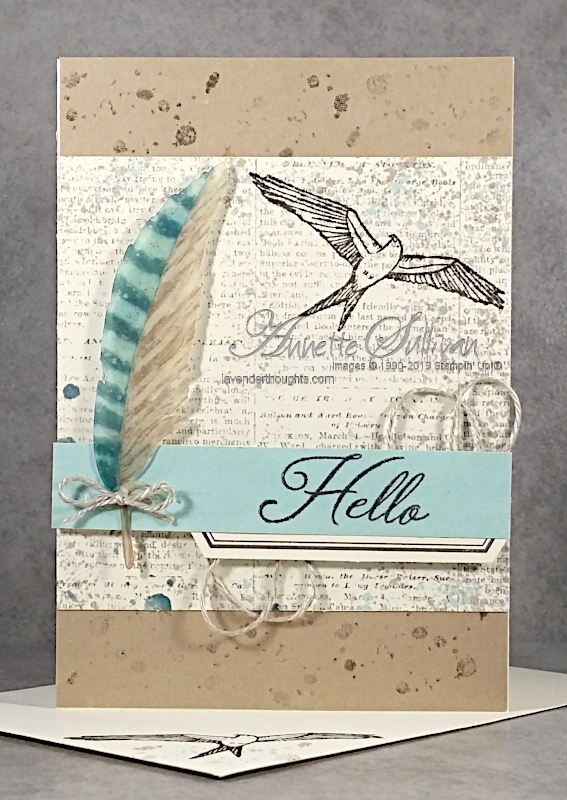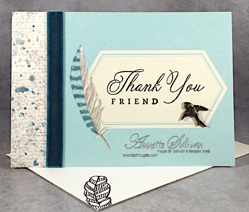 - A Linen Thread bow was attached to the bottom of the feather with an Adhesive Dot to complete the card.
