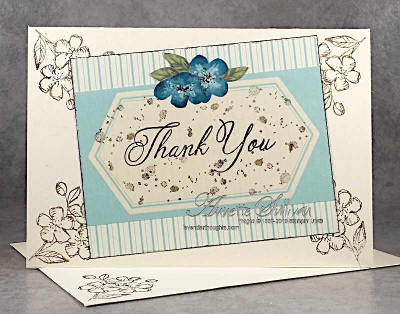 - The 3″ x 3½” flower panel was added to the lower part of a Very Vanilla Note Card.