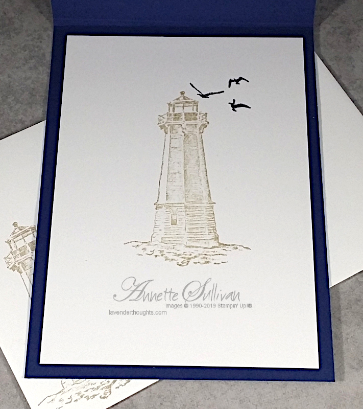 - Another showcase of the Come Sail Away DSP with die cut accents of seaweed and the lighthouse.