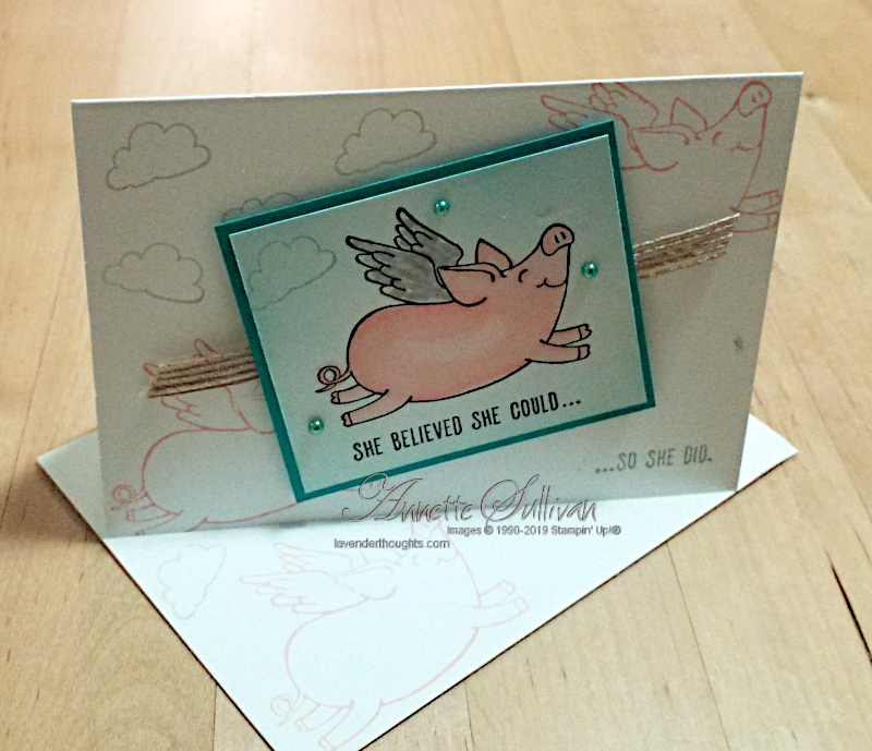 - Stampin’ Blends Alcohol Markers were used to colour the pig and the background.