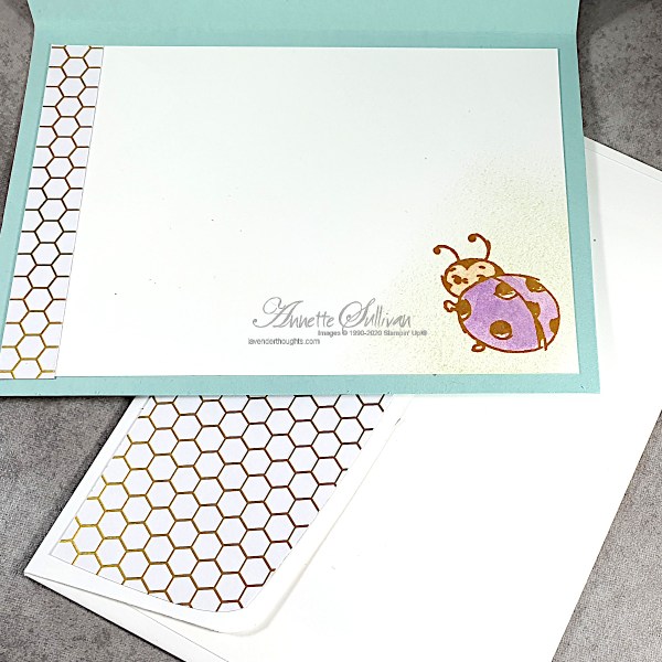 Today’s ladybug card highlights the pretty die cut flowers as well as the Golden Honey Specialty DSP (another limited edition Sale-A-Bration product). At the moment you can purchase coordinating dies for the set. Today’s card uses the stamps and dies. The stamp set and DSP are available FREE with qualifying orders during Sale-A-Bration (only until 31 March). The dies will only be available during this period also.