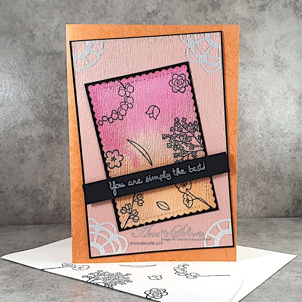 - Adhere the art panel to the Blushing Bride, run through the Subtle 3D Embossing Folder and attach to the card base.