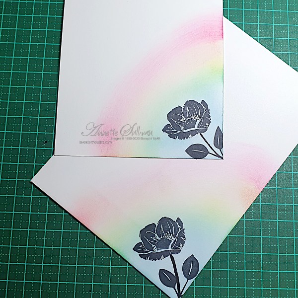 - The three masks used are from the Basic Pattern Decorative Masks pack and were used with sponges and inks to create the rainbow pattern. In all cases, once the mask was removed, the background was too stark so I lightly sponged it in the same colours.