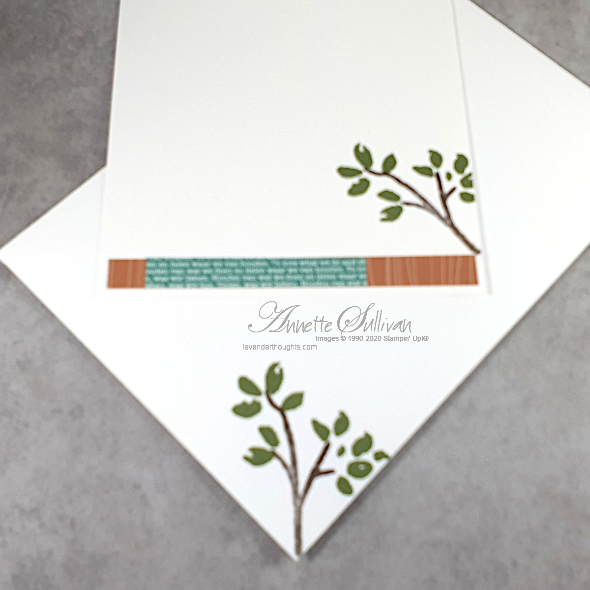 - Branches were stamped in Early Espresso and the leaves in Mossy Meadow. These images are from the new Birds & Branches stamp set. The sentiment is from the Free As A Bird stamp set.