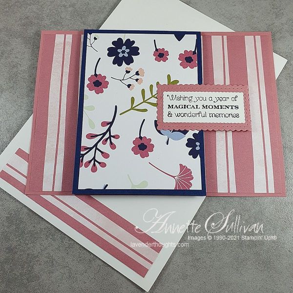 - This fancy fold is a great way to showcase your Designer Series Paper. My card today uses the Paper Blooms DSP which is FREE with a qualifying order during Sale-A-Bration.