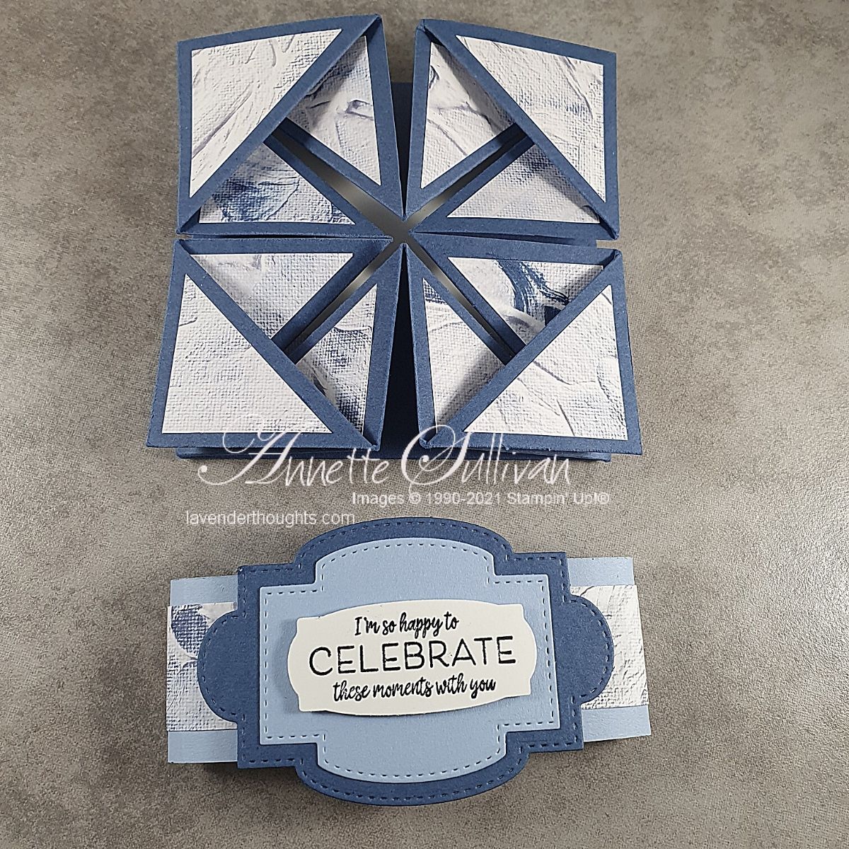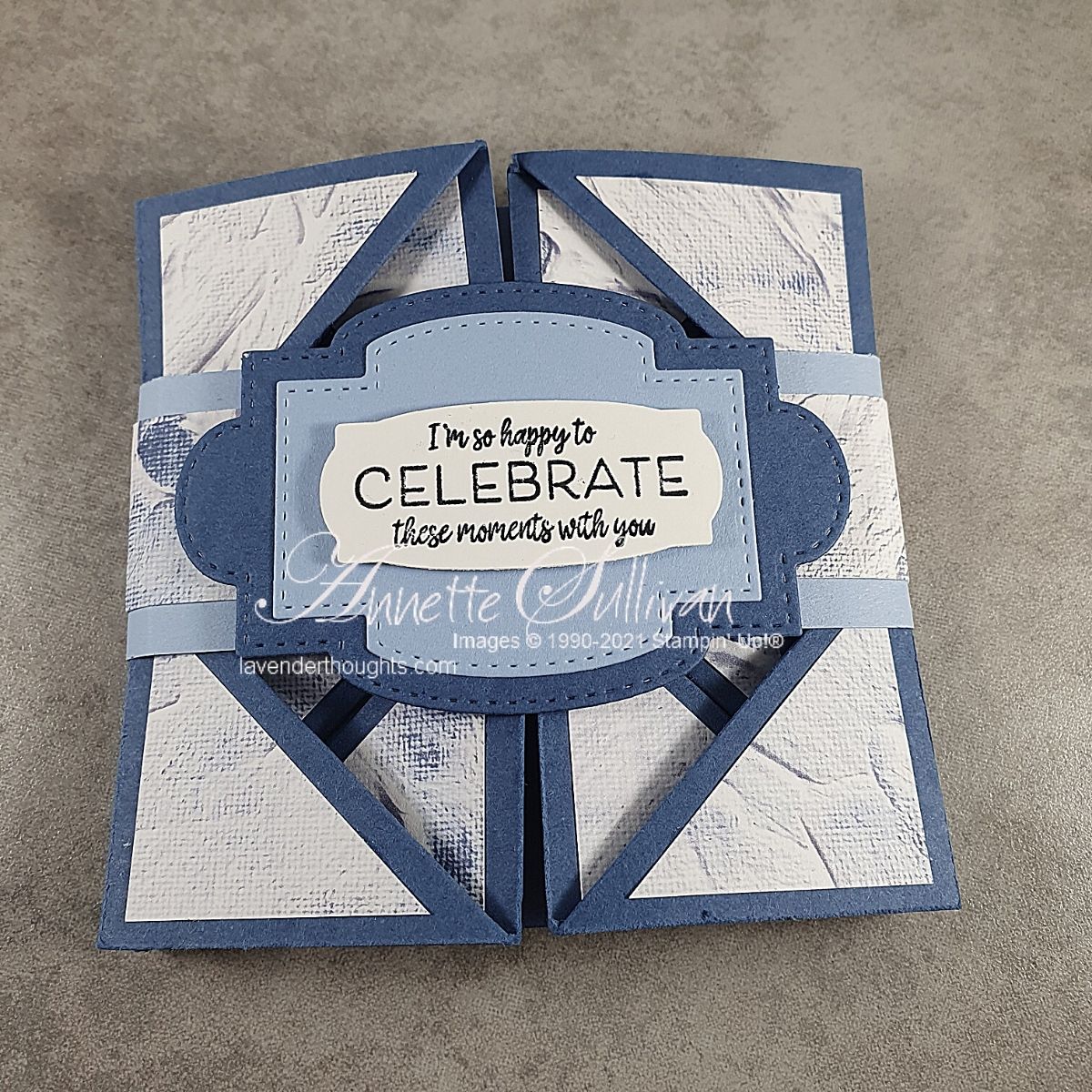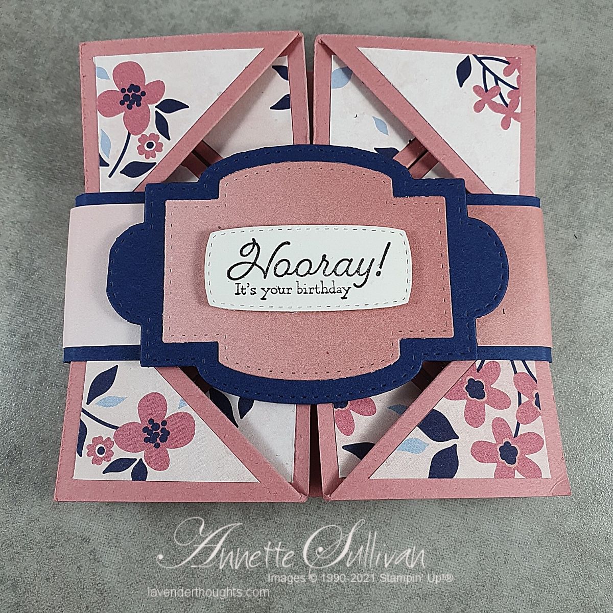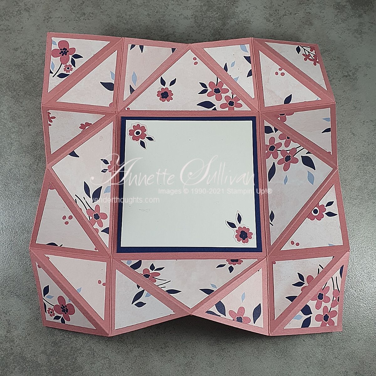 - This fancy fold is a great way to showcase your Designer Series Paper. The card base is an 8″ square and folds to a 4″ square which easily fits into a standard C6 envelope.