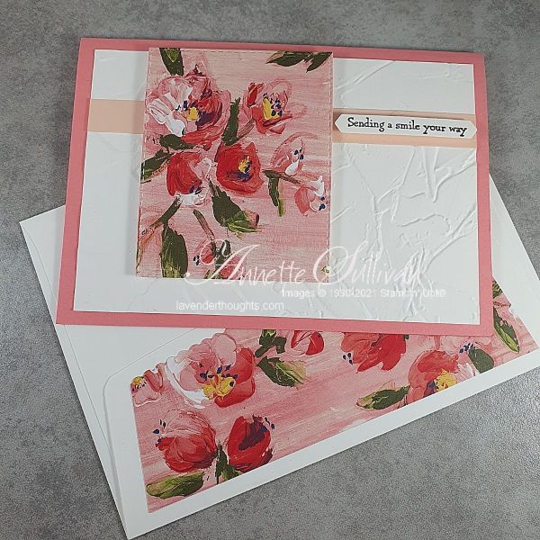 For the latest Sketch Challenge at splitcoaststampers.com I have used the beautiful Fine Art Floral DSP on a background of the Painted Texture 3D Embossing Folder.