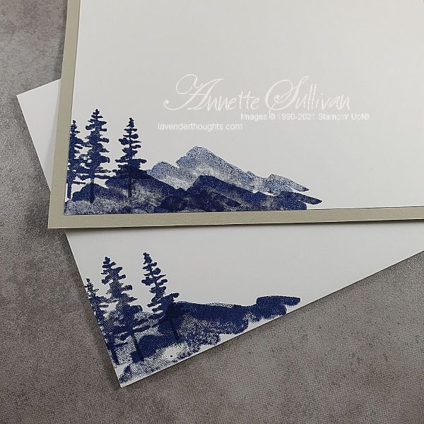 - To emulate the watercolour scene, I used images from the Waterfront Stamp Set on the inside of the card and the envelope