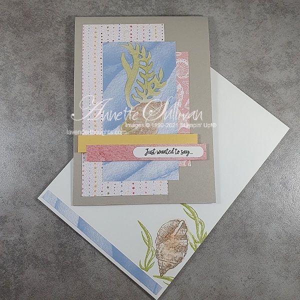 - Accessories: Messages Die, Seaside Shells Dies, Seashells 3D EF, Dimensionals, Blending Brushes, Champagne Mist Shimmer Paint