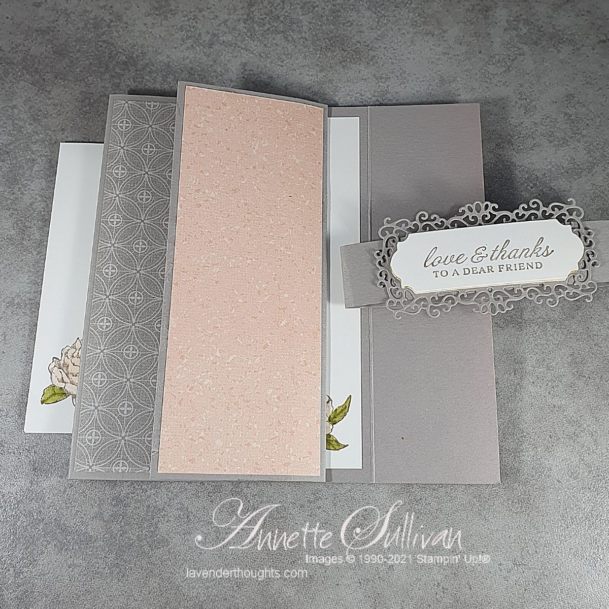 - Cardstock: Gray Granite, Basic White, Peony Garden DSP