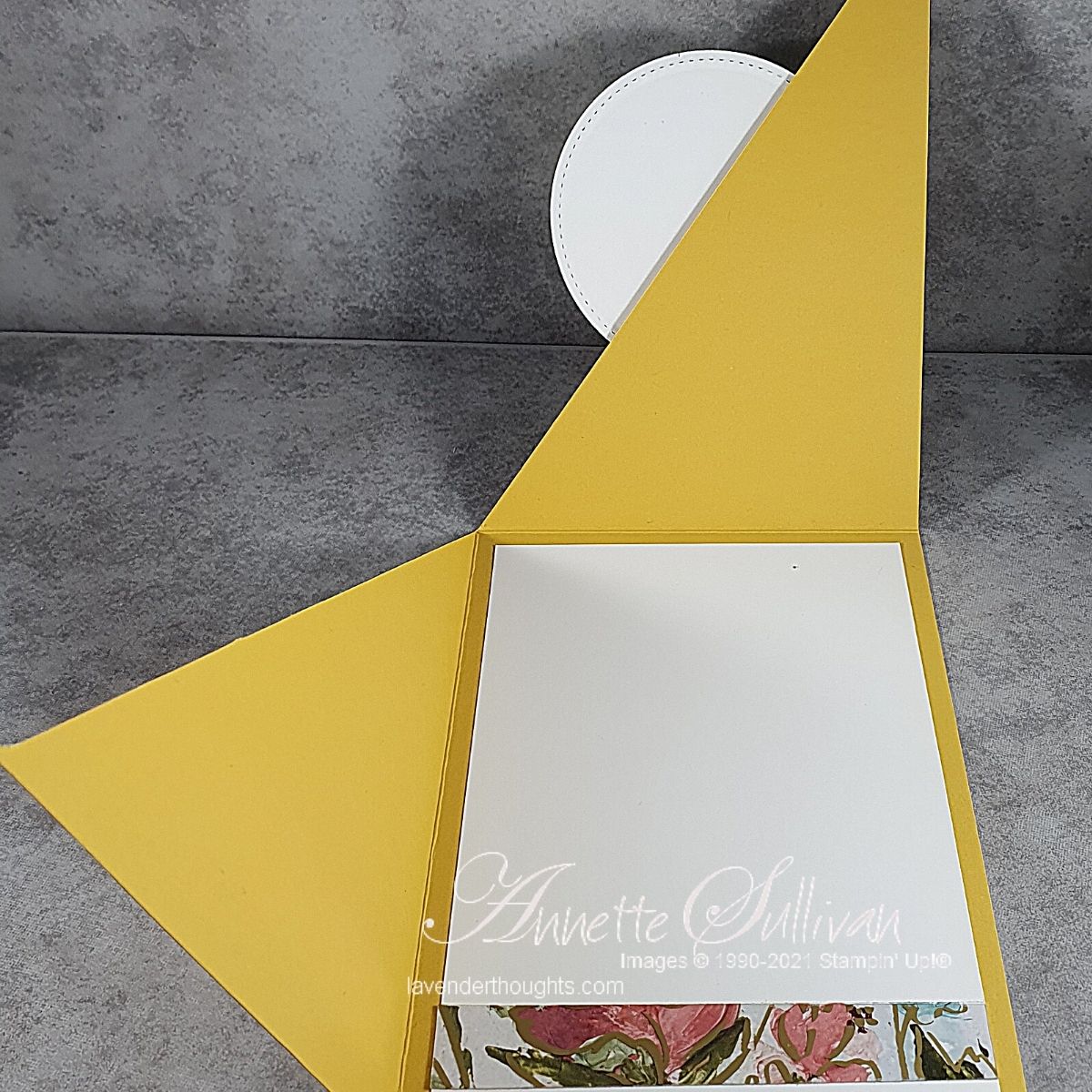 - Remember to only adhere sentiment die cut to one side of the triangle front (see photos).
