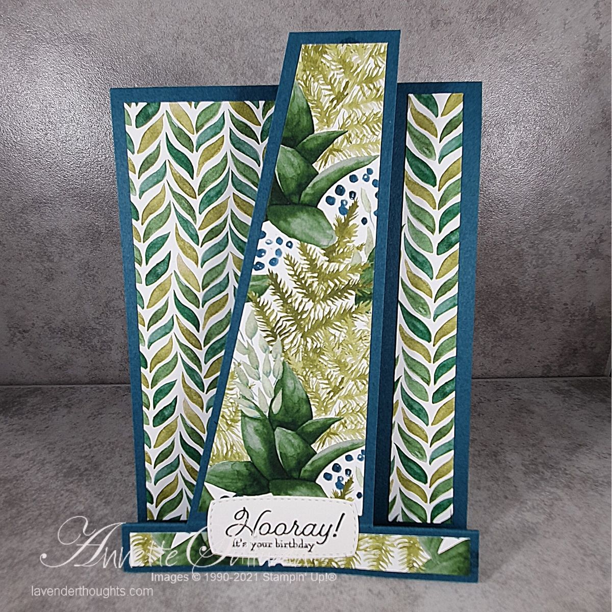 Today I am using up some of the recently retired Forever Greenery DSP to create a couple of Step Cards with a Twist.
