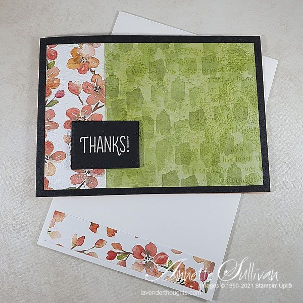- The card base is Pale Papaya, but rather than adding an extra layer I used the Direct to Paper method to add black ink around the edge of the card front before adding the DSP.