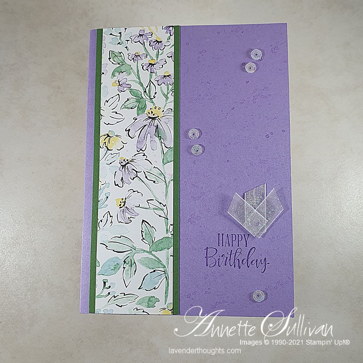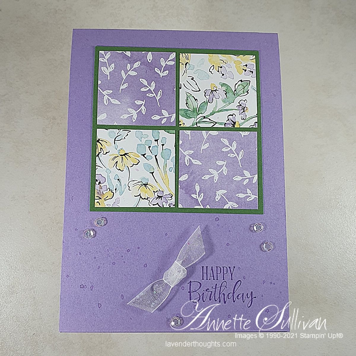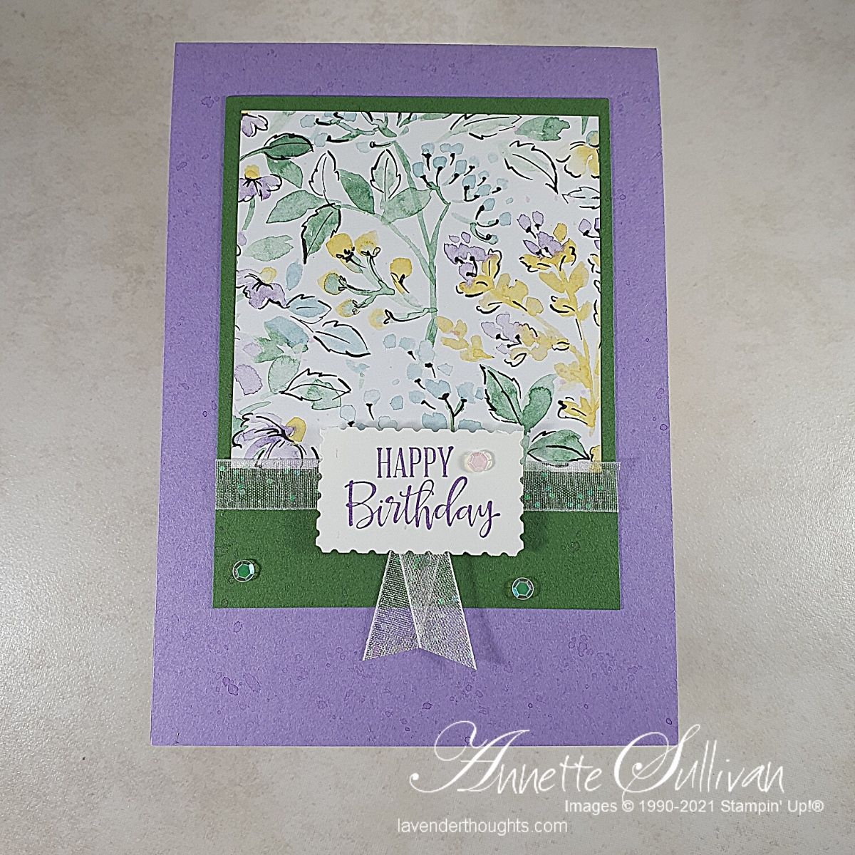 - Cardstock: Highland Heather, Garden Green, Basic White