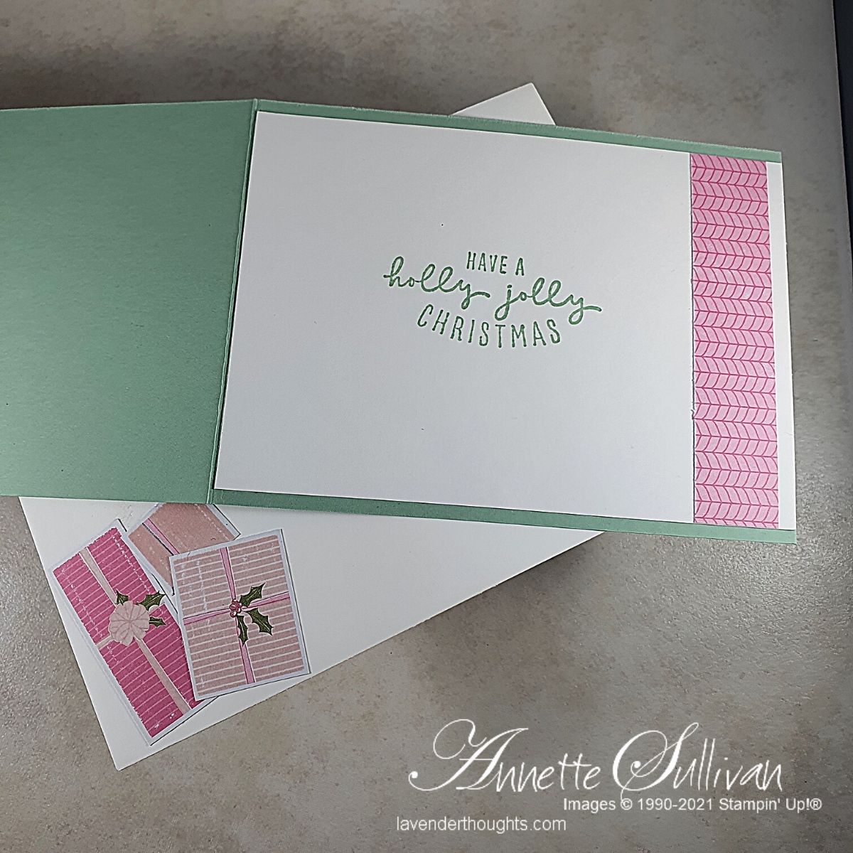 - Card 2: Thick Basic White, Mint Macaron, Blushing Bride, Peaceful Place Specialty DSP, Whimsy & Wonder Specialty DSP