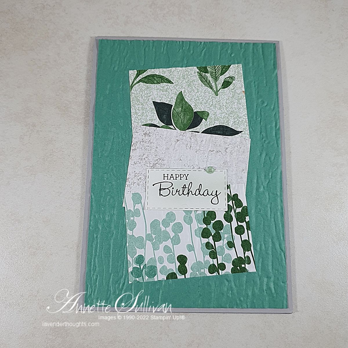 - Layer onto a 2¾” x 2¾” piece of cardstock.