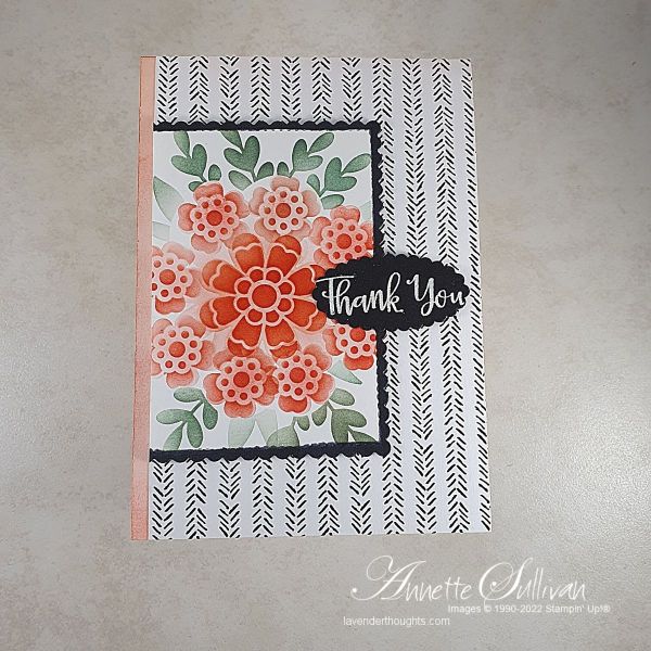 Card 2: Calypso Coral and Soft Succulent inks were used to create this pretty flower.