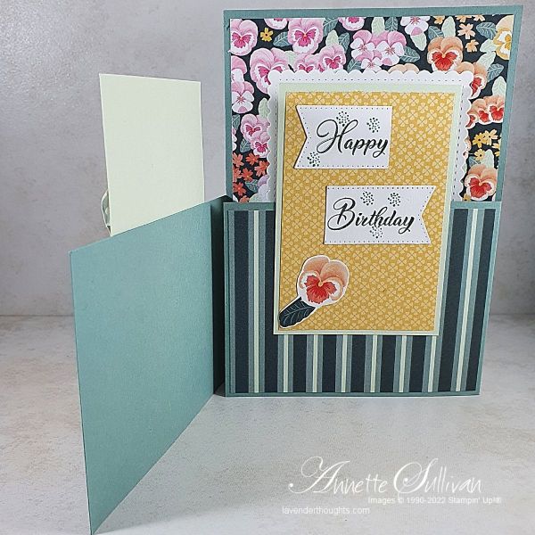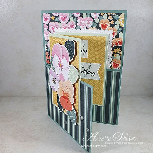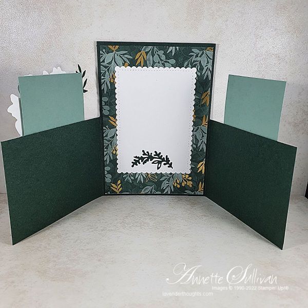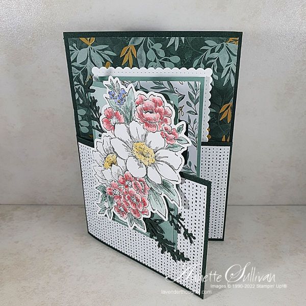 Today I have a couple of fun trifold cards for you. They are a great way to showcase your Designer Series Paper. My thanks goes to Patty Bennett for the inspiration.