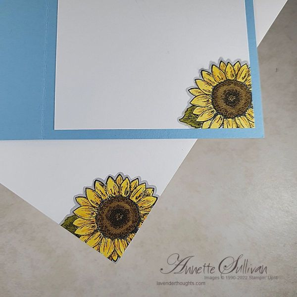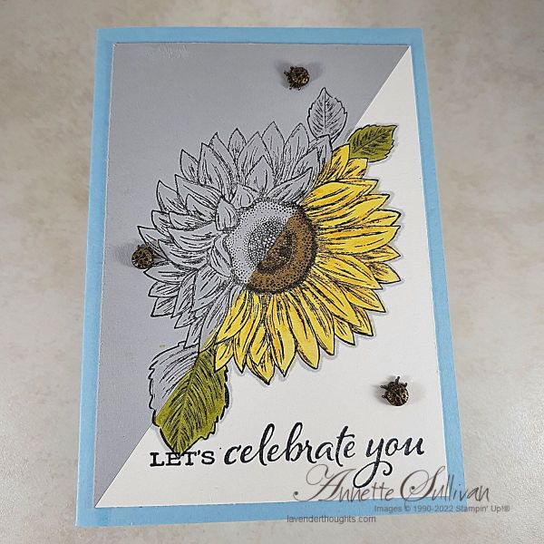 I saw this idea on Pinterest and had to try it with the beautiful large Sunflower image from Celebrate Sunflowers. I call it the Split Negative with a spotlight look.