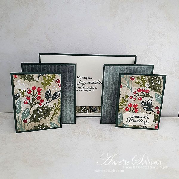 It uses Evening Evergreen and Very Vanilla cardstock, Boughs of Holly Designer Series Paper, and Christmas Whimsy stamp set.