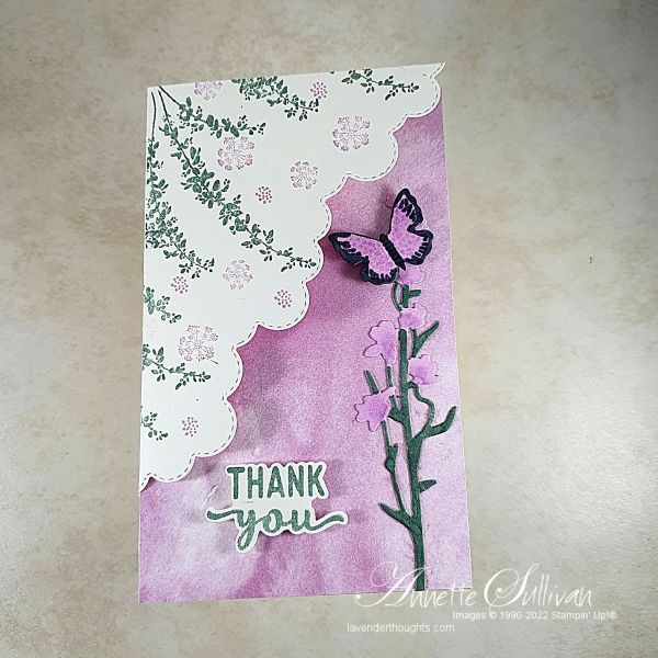 - Stamp images from Botanical Layers using Soft Succulent and Fresh Freesia inks on the card front.