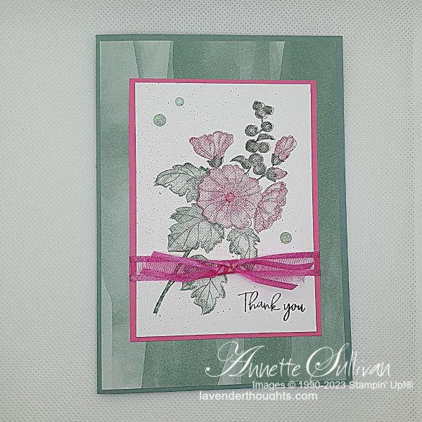 Card 3: The stamp set contains images for Two Step stamping and I have used them to create this gorgeous image in Polished Pink and Soft Succulent.
